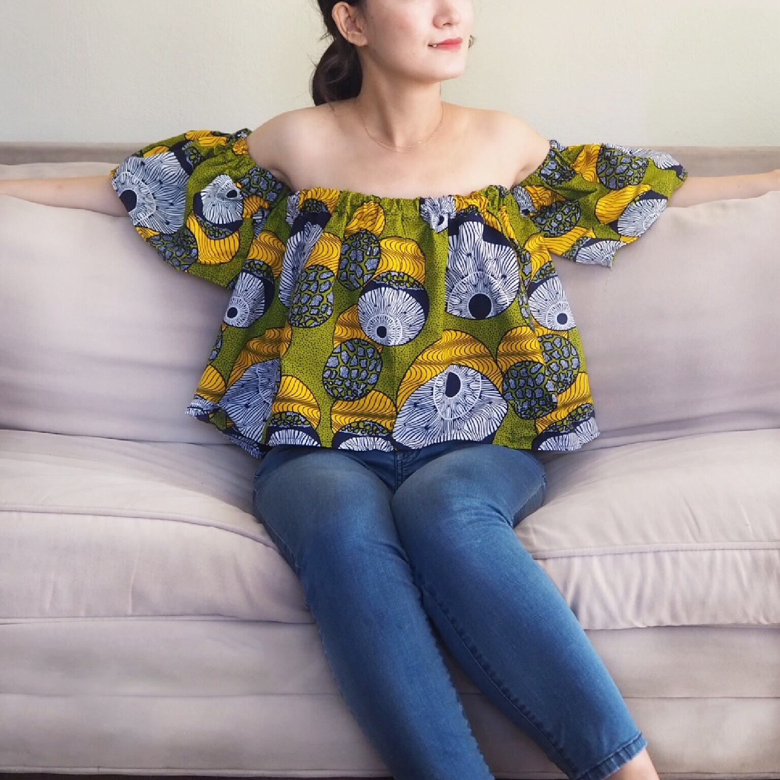 ジャマイカのデザイナー兼テイラーが全行程を手作業で一つ一つ丁寧に作った、世界に二つとないブラウスです。各柄1点のみの入荷なので、気になる方はお早めに。